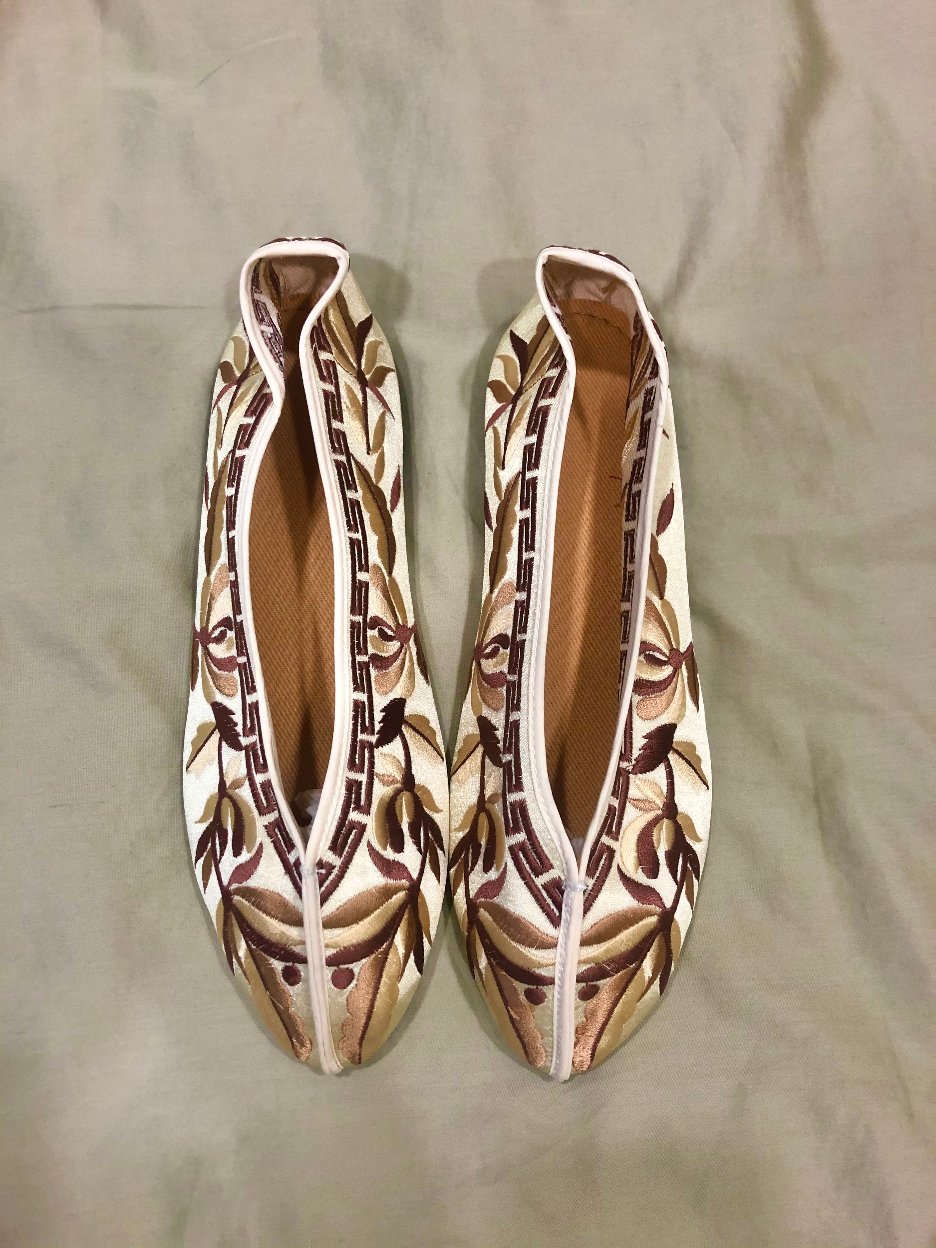 【送料込】チャイナシューズ葉カフェラテ