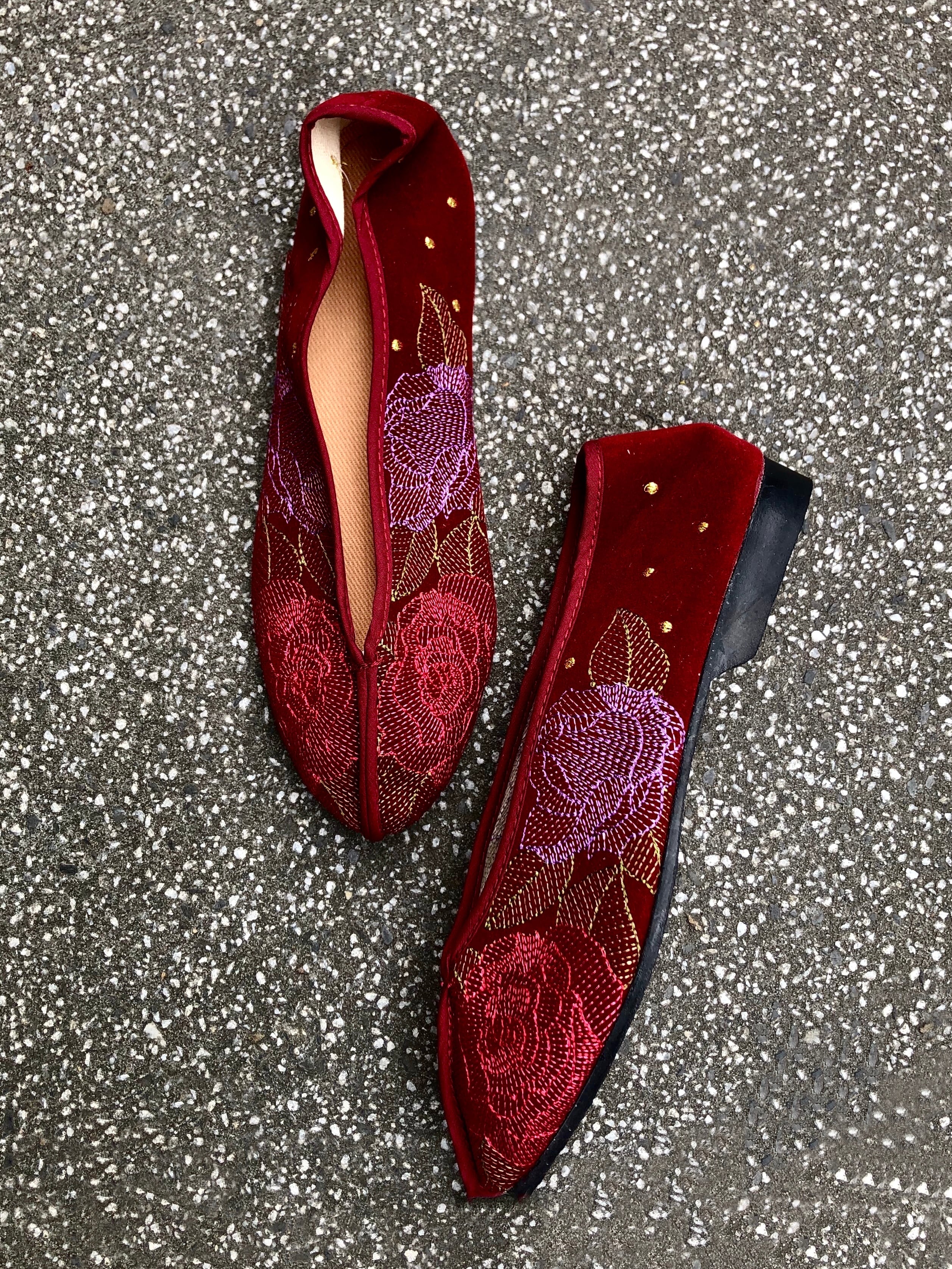 【送料込】ベロアチャイナシューズ赤バラ